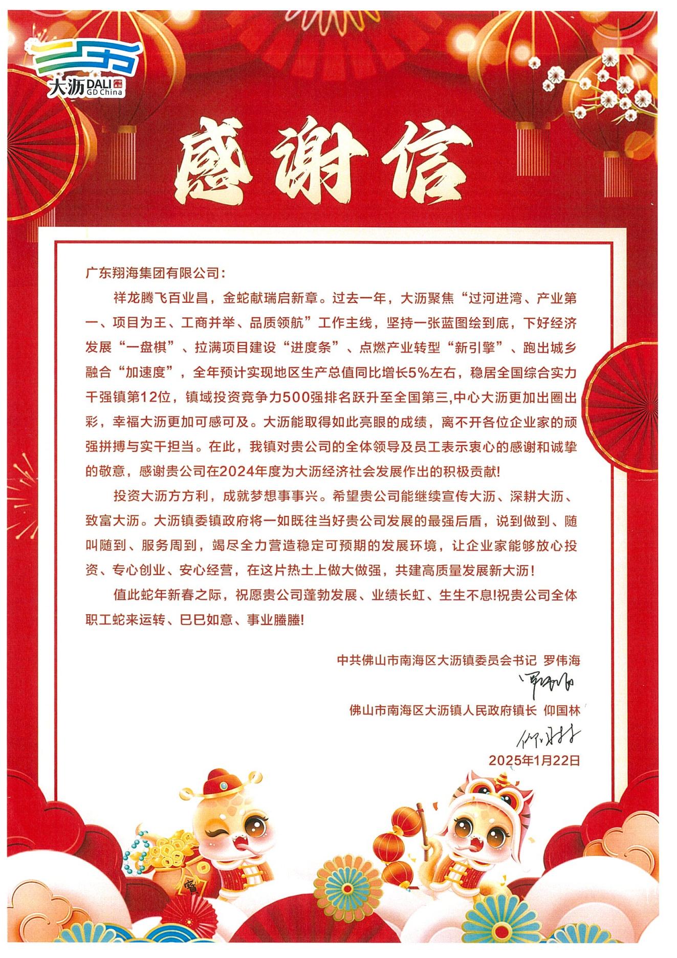 好博官网登录深感荣幸,新春之际收到了一封来自大沥镇政府的感谢信。作为大沥的本土企业,我们深知企业的成长离不开当地政府和社会各界的支持与厚爱。在此,我们衷心感谢大沥镇委镇政府,感谢各位合作伙伴的鼎力支持和信任。